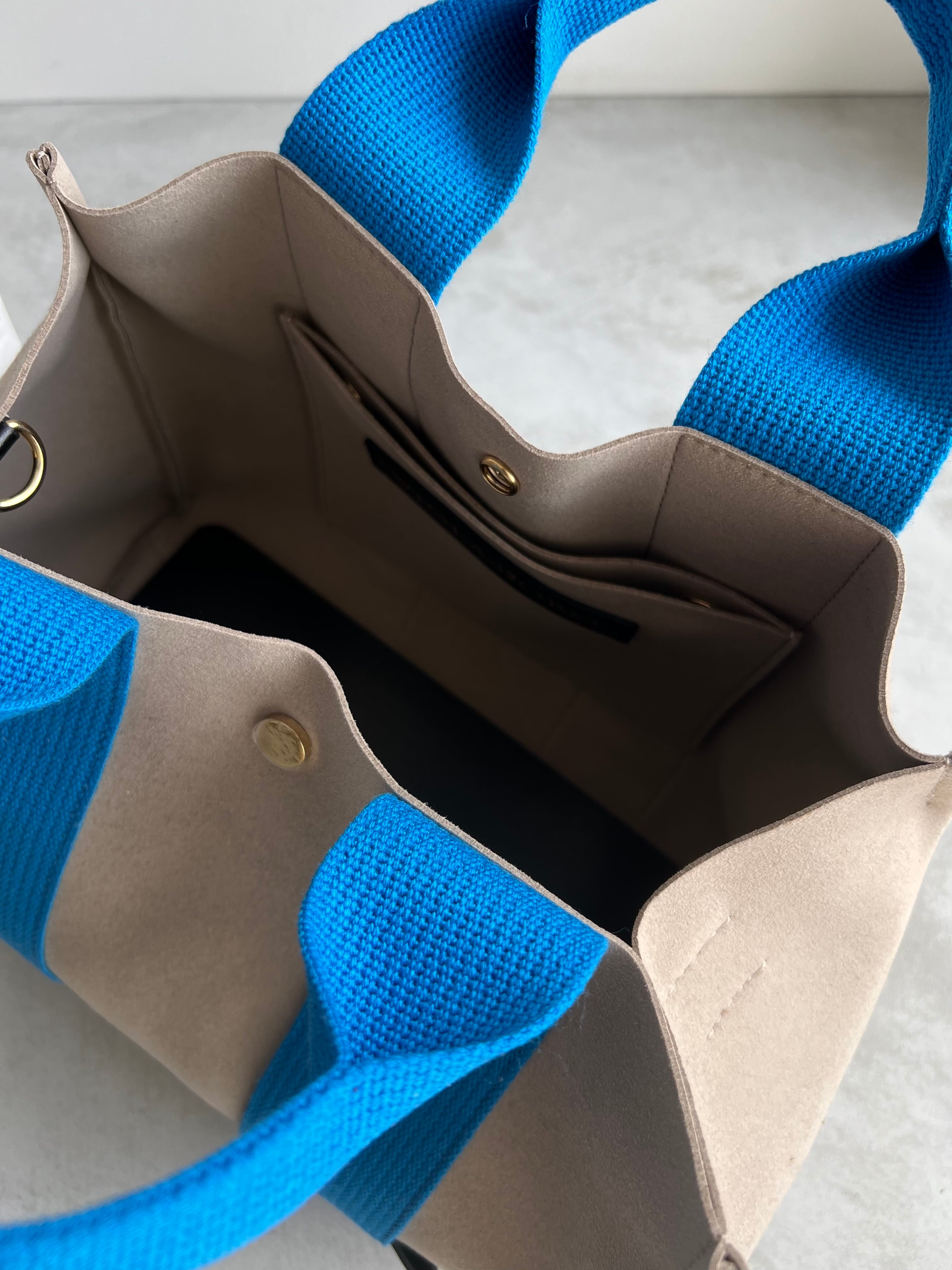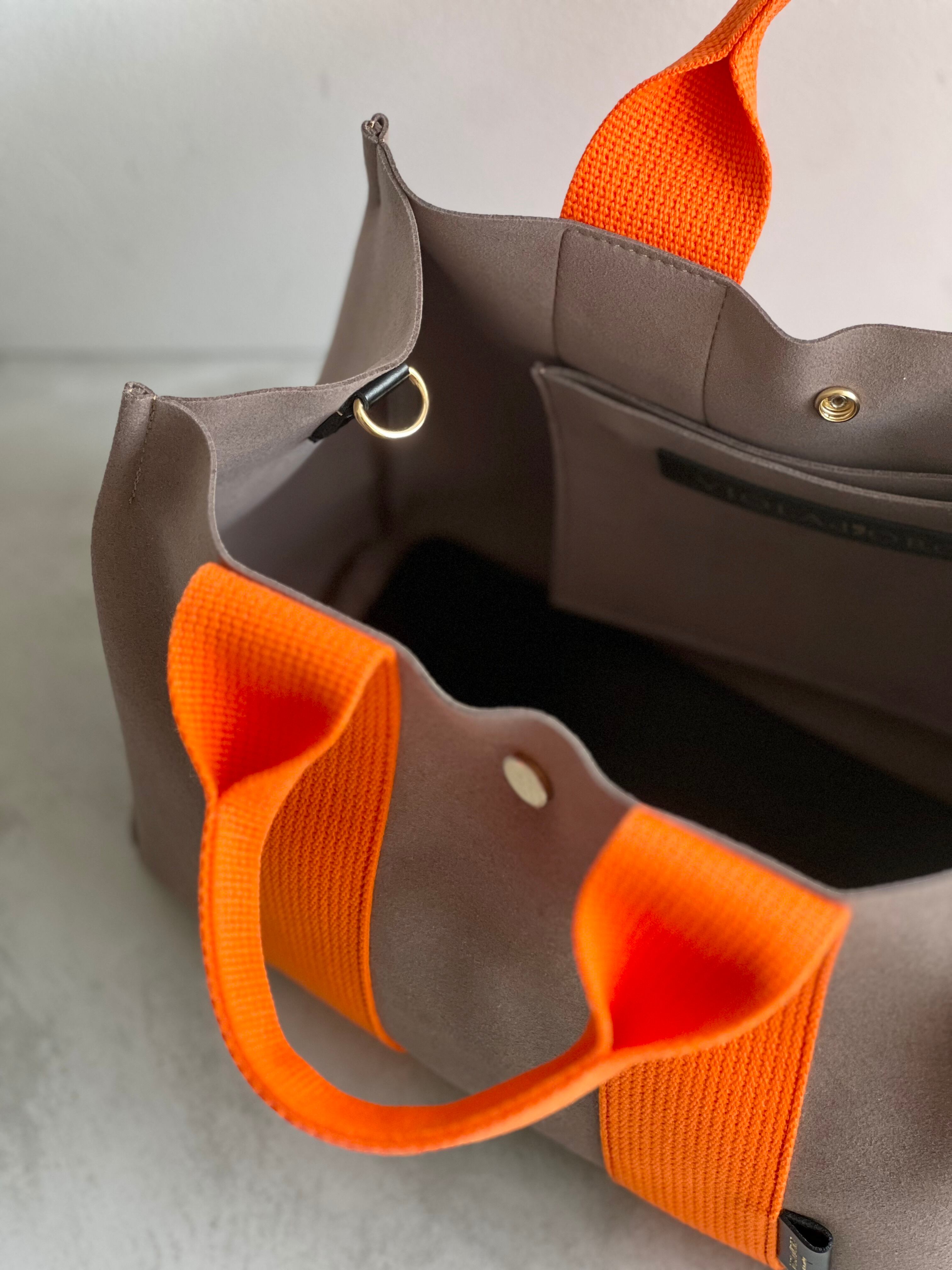 スエード調のハイテク素材を使用したトートバッグのMサイズ。