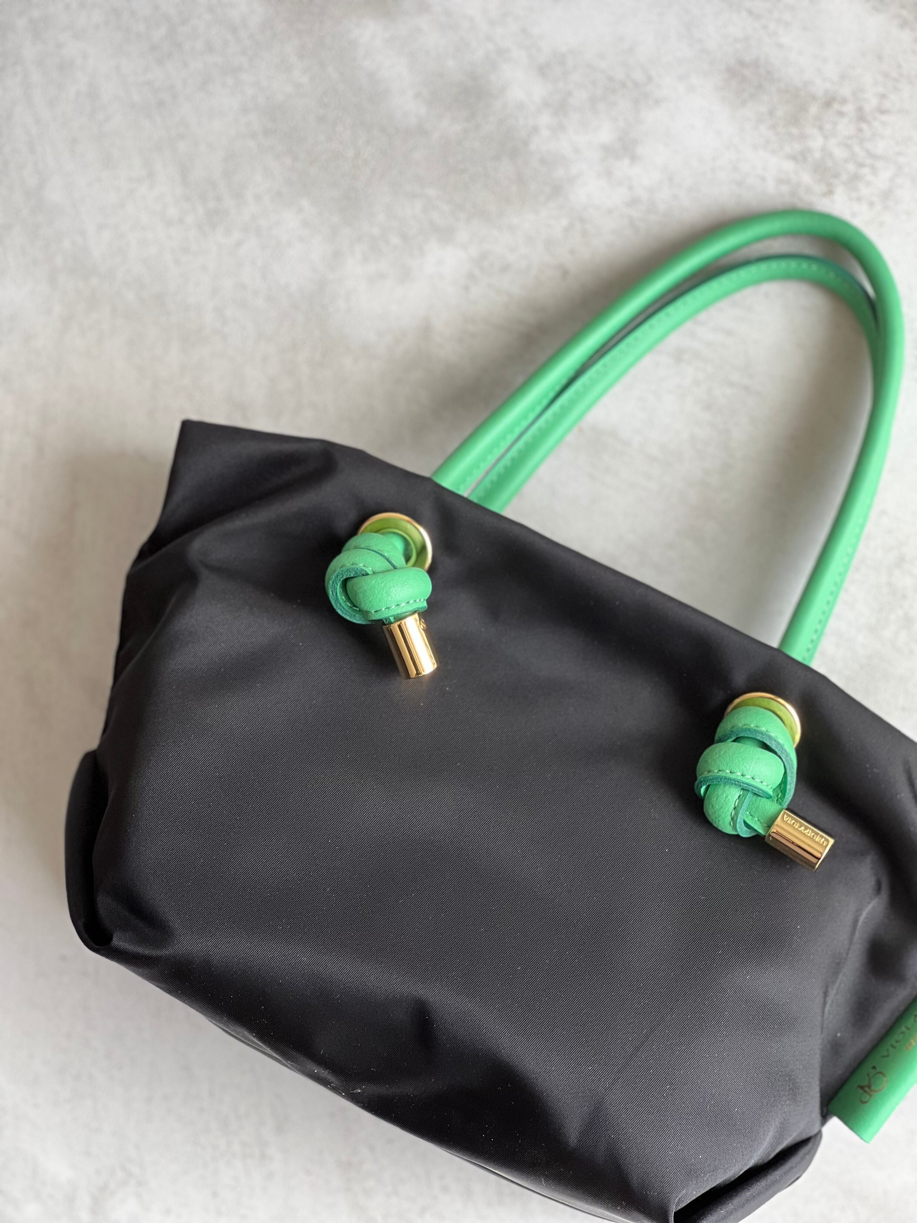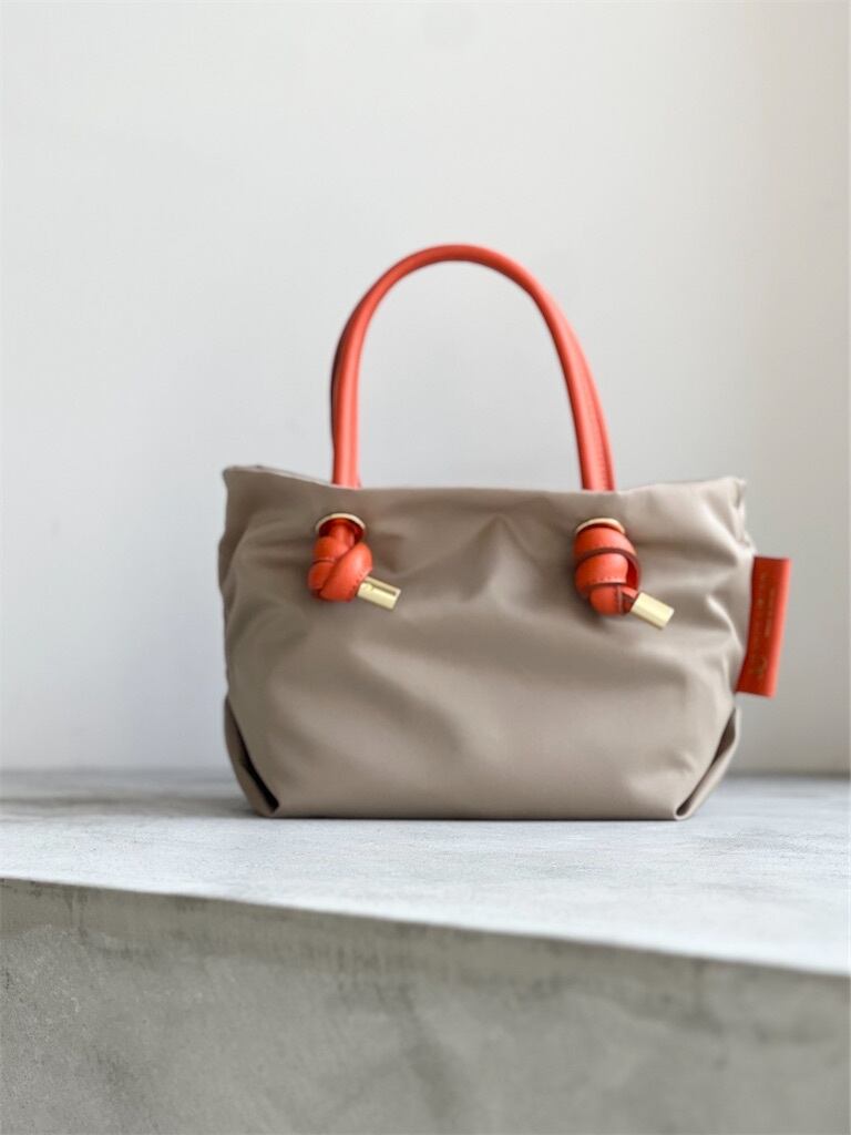 シンプルなデザインのボディにノットハンドルがアクセントになったトートバッグのXSサイズ。