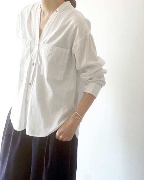 深めのVあきで抜け感のあるリラックスした雰囲気のライトオンスデニムシャツ。
