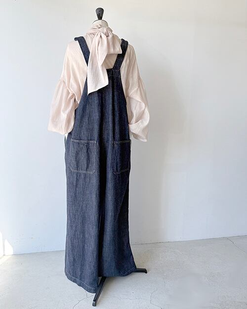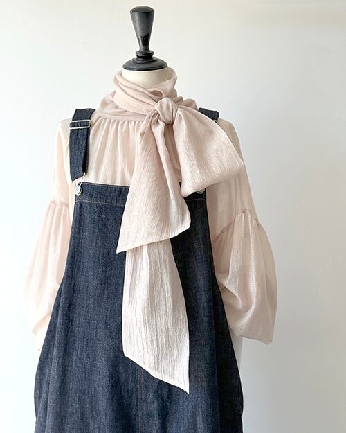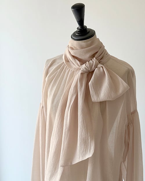 ボウタイは前で結んだり、後ろで結んでハイネックにしたり、ラフに垂らしたりとアレンジ自在です。