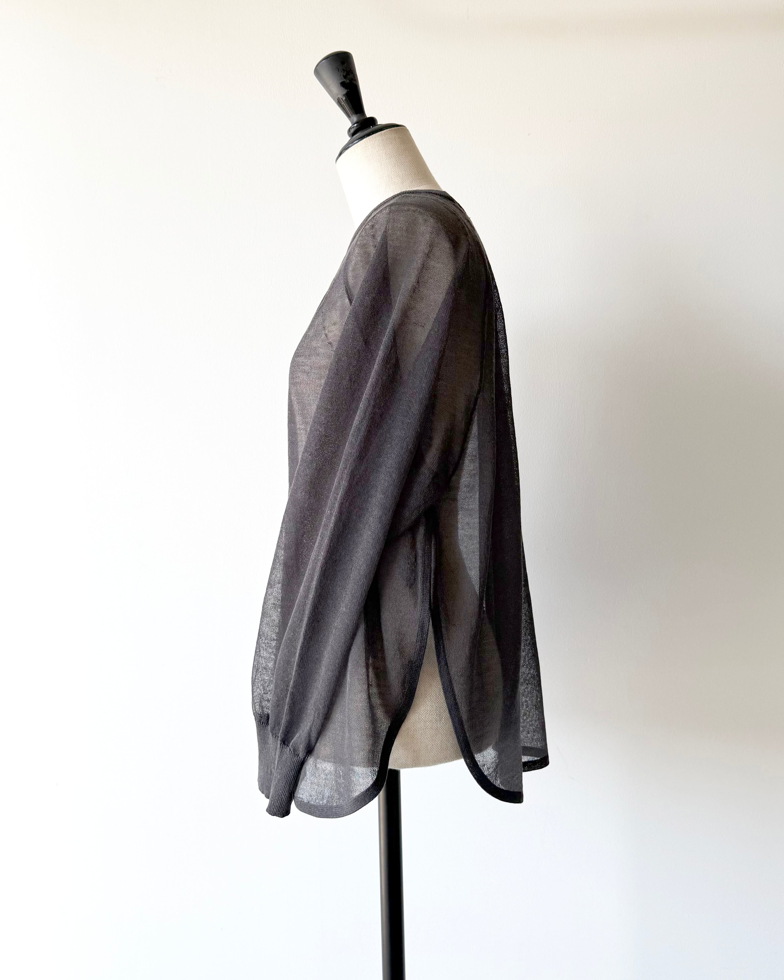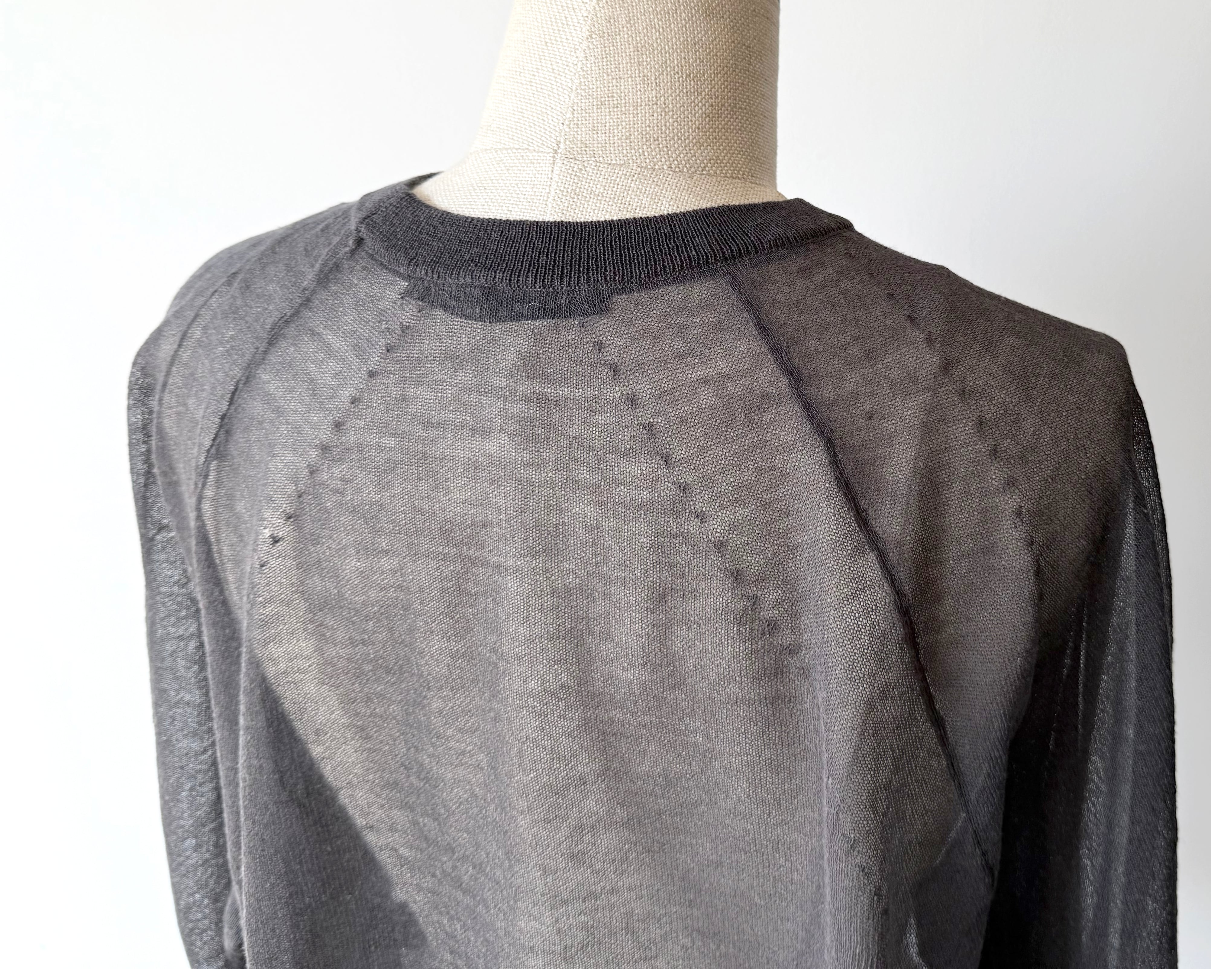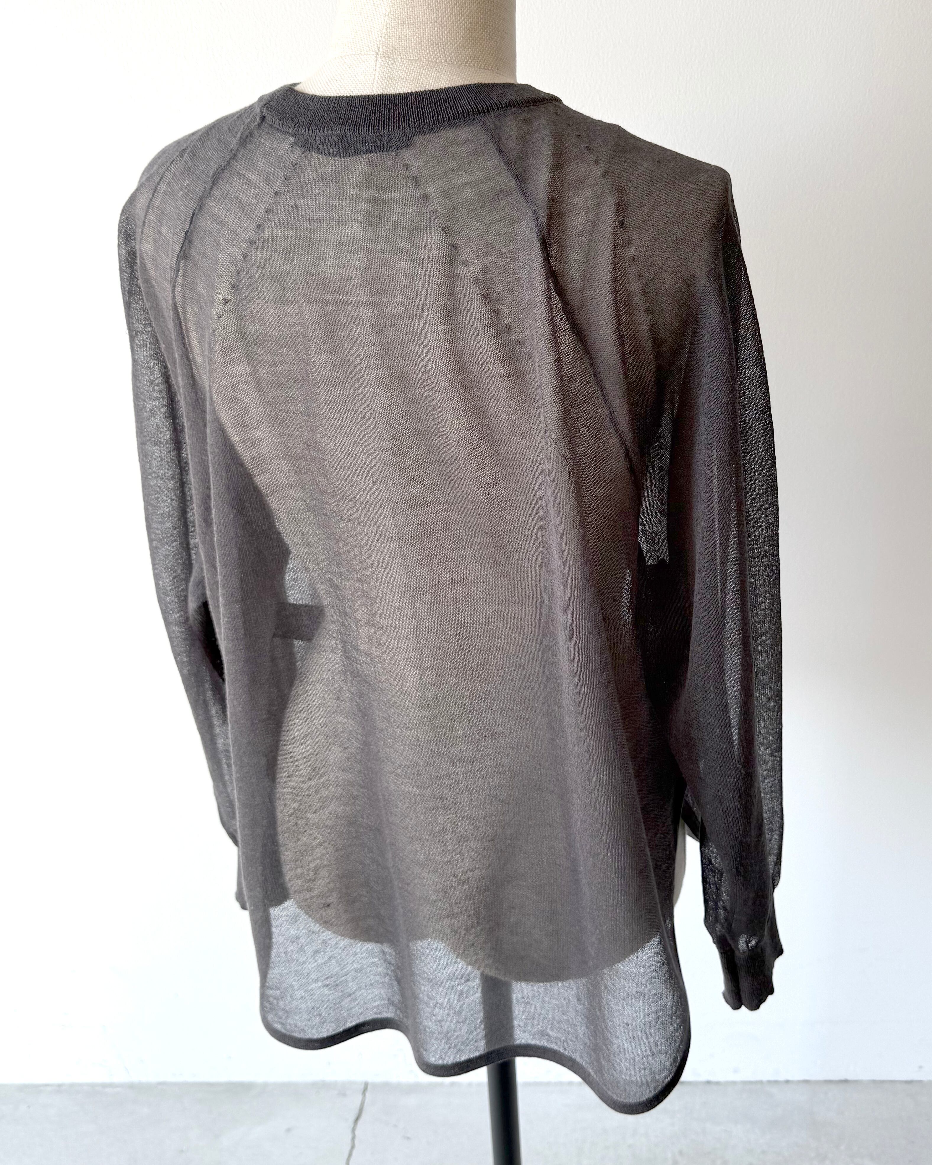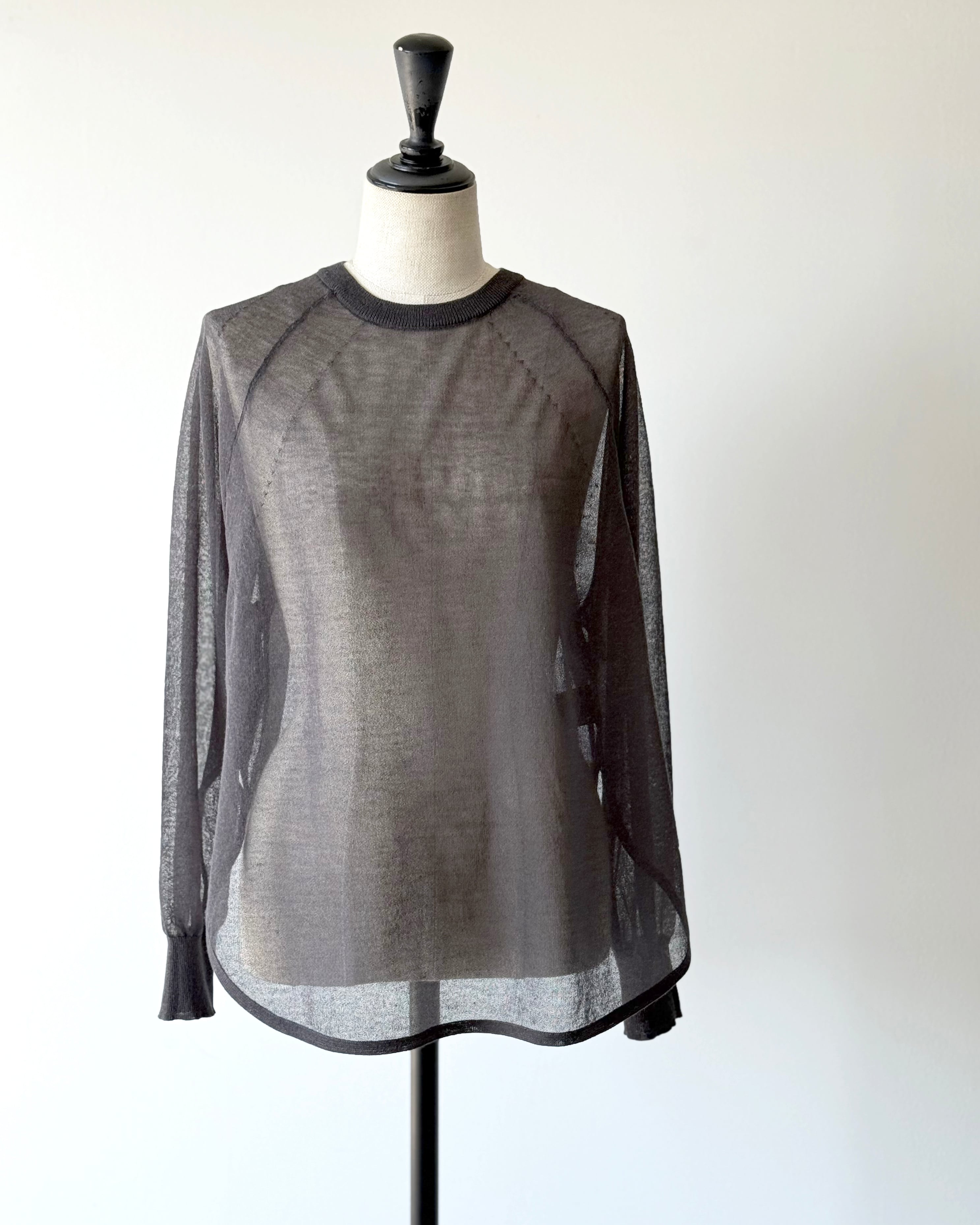 透け感のある繊細な編地でカジュアルになりがちなラグラン袖のプルオーバーを、軽やかに大人っぽく仕上げています。