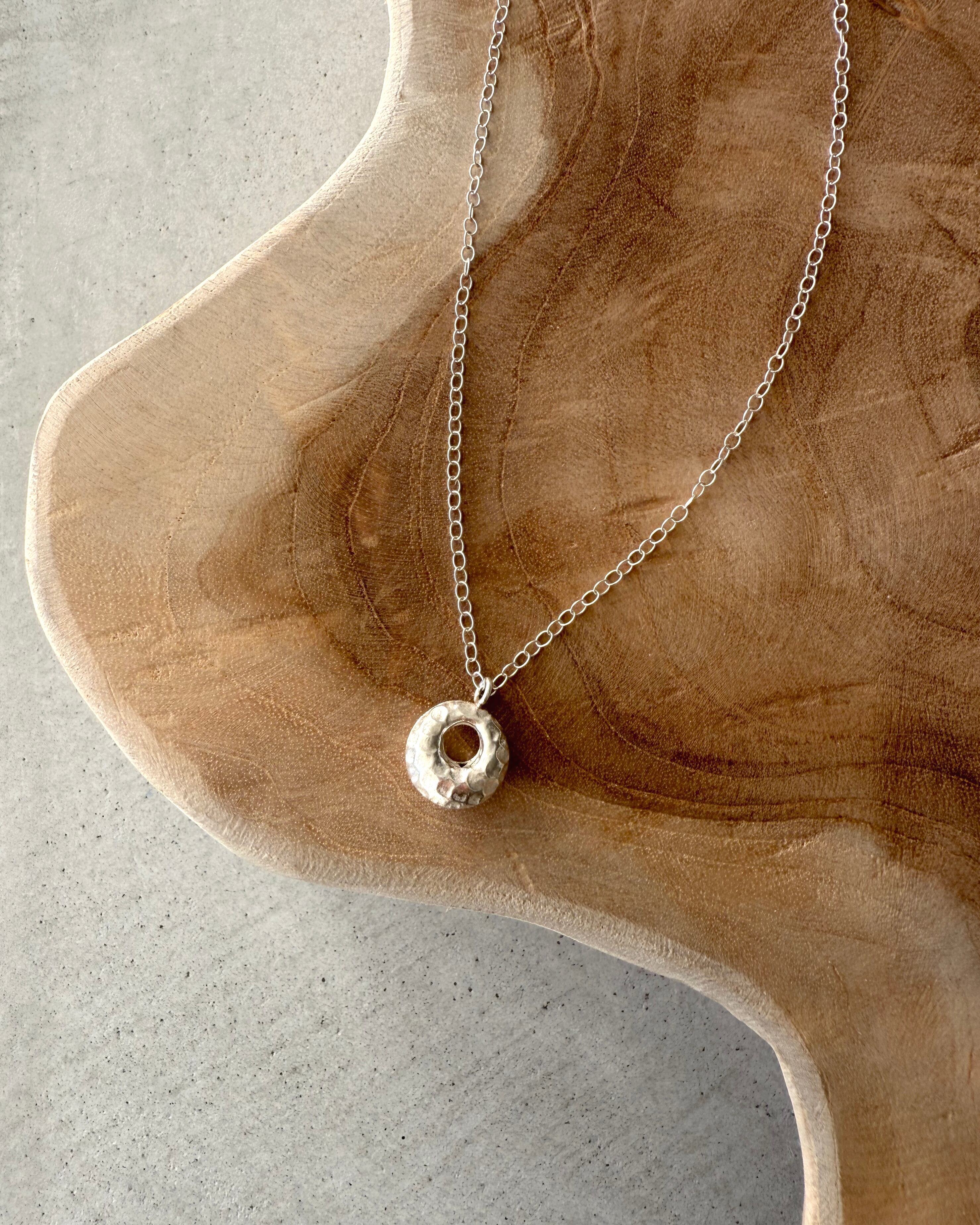 ポコポコと動きのある表情がポイントのリング状ネックレスは、どんなお洋服にも合わせやすいのが魅力。