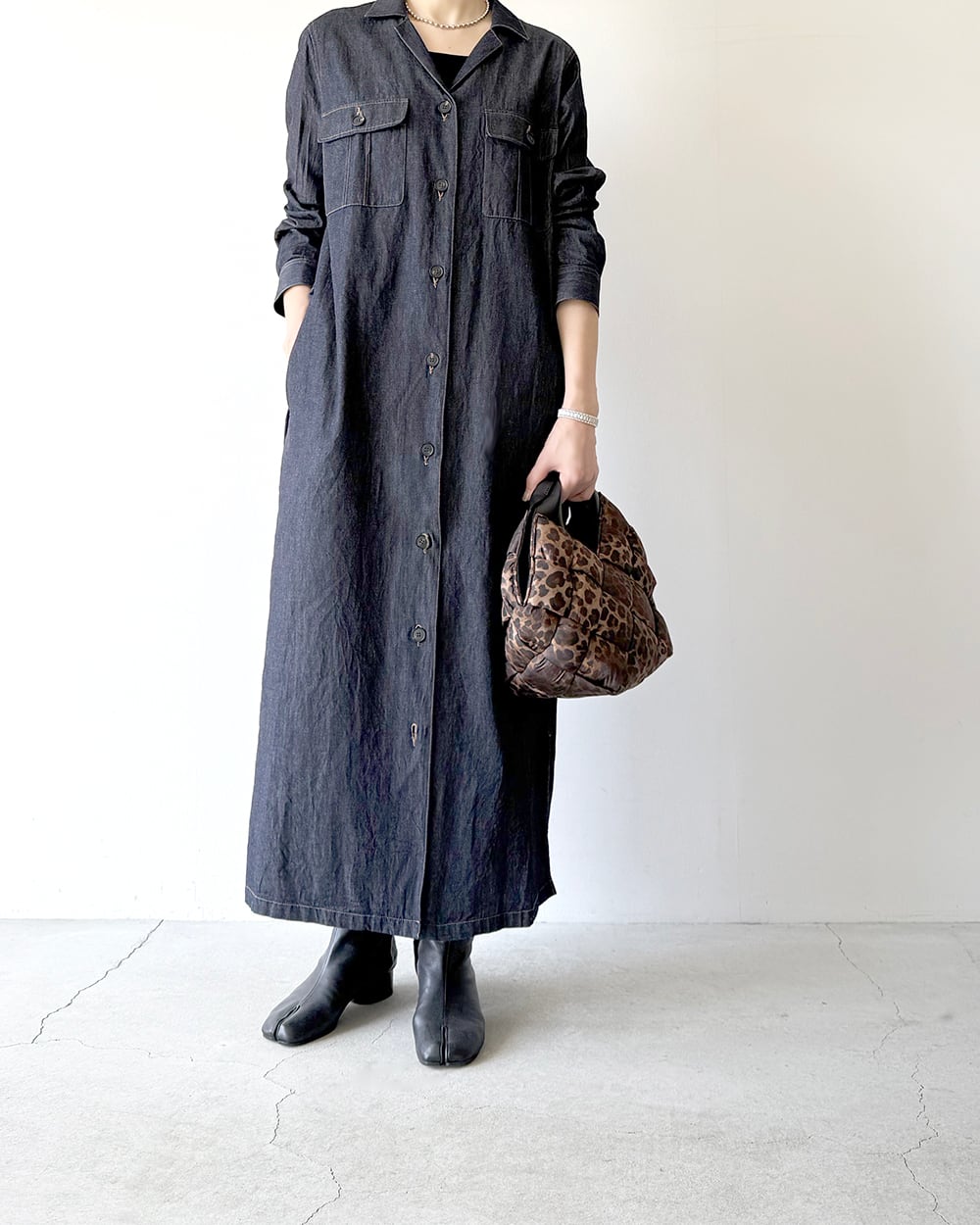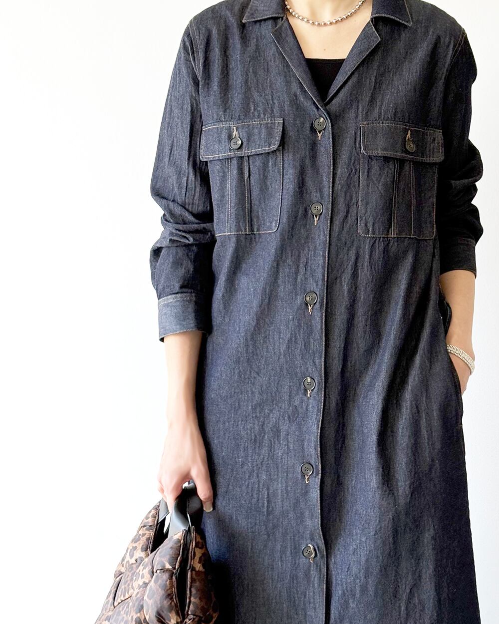 シャツワンピースは案外ダウンジャケットなどとも相性よく着られたりするので、長く使えます。