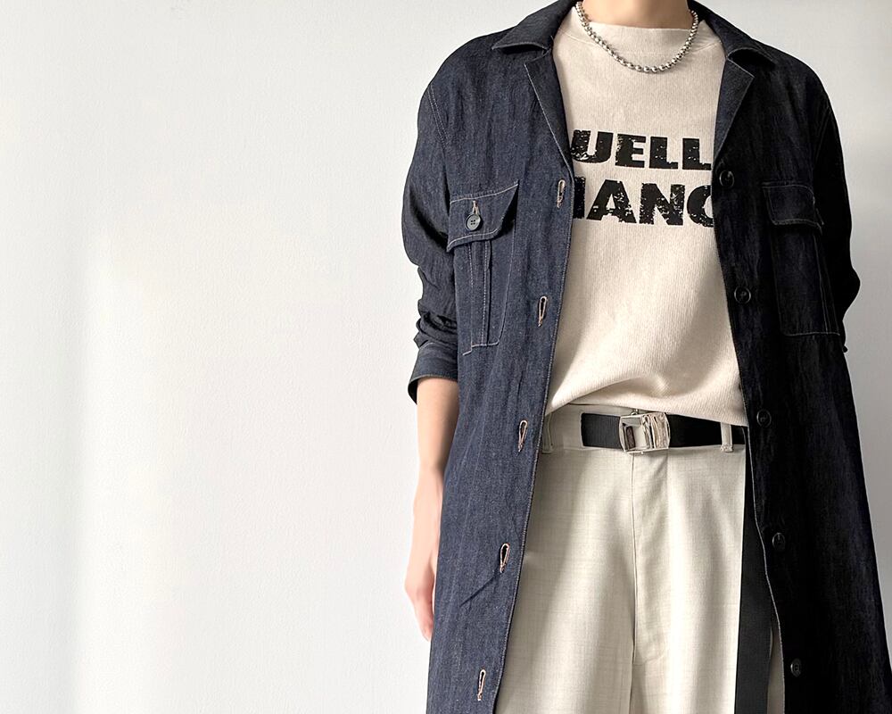 Tシャツ感覚でジレやジャケットのインナーとしてはもちろん、インにタートルなどを合わせてレイヤードするなど、幅広いコーディネートに使っていただけます。