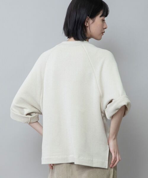 ローゲージで編立を行うことで、通常の裏毛素材よりも柔らかくふくらみがあり、しなやかな落ち感があるのが特徴。