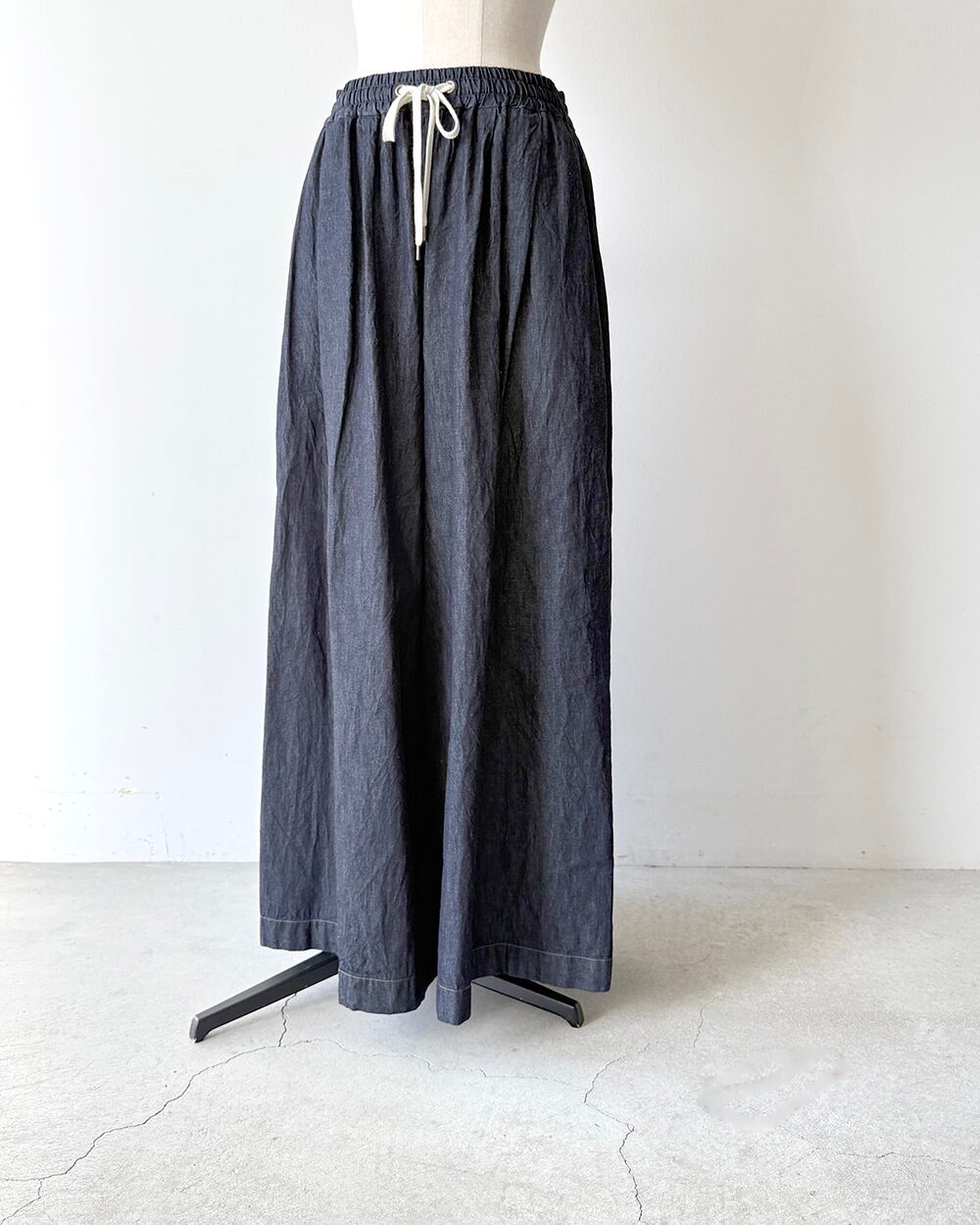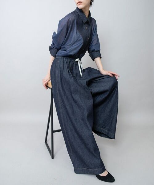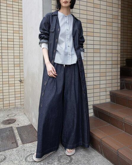 しっかり目のライトオンスデニム使いなのでボリュームがタテに落ちすぎず、裾にかけて広がりを保ってシルエットをキープします。