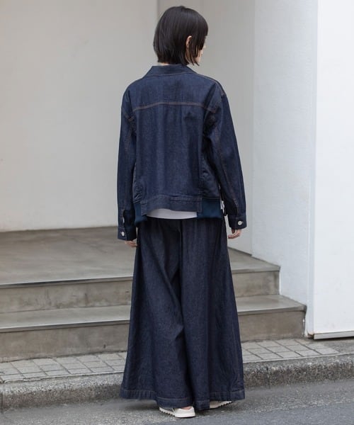 裾丈にほんのり段差をつけ、両脇とも深いファスナーあきにしているのでサイドや斜め後ろからの雰囲気はすごく特徴的なアイテムです。