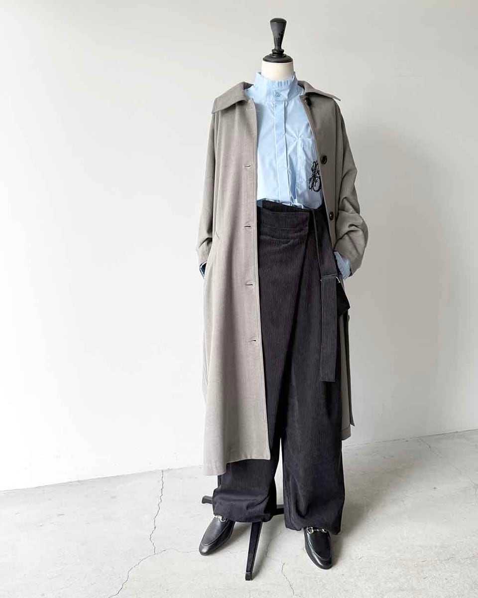 ドレープのあるソフトな質感でカジュアルになりすぎない大人のコーデュロイパンツ。今季は取り外し可能なワンショルダーベルトが付き、より着こなしの幅が広がりました。ハードな着心地と着膨れが気になるコーデュロイのイメージを払拭する、落ち感のある中肉素材を使用。ストレッチ性がありストレスフリーな着心地で秋のスタイルにウォーム感をプラスする一本です。カジュアルスタイルはもちろんドレスライクなトップスに対し“ハズし”を作る大人の引き算ボトムとしても活躍します。シワになりにくく長時間の着用でも上品さをキープできるので気兼ねなくデイリーに使いやすいコーデュロイパンツです。