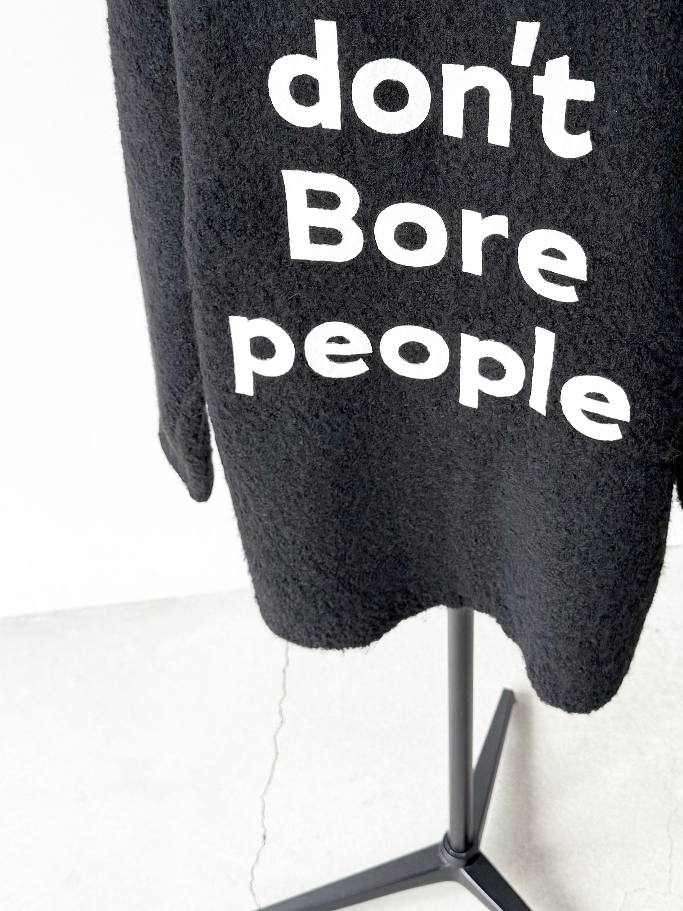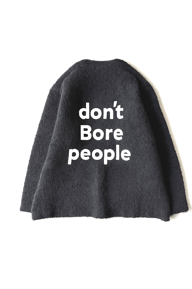 背中にラバープリントのロゴDON’T BORE PEOPLEの文字が入っています。