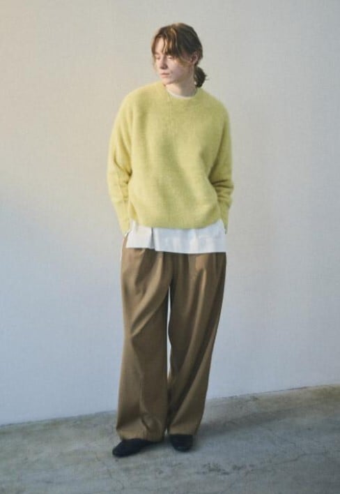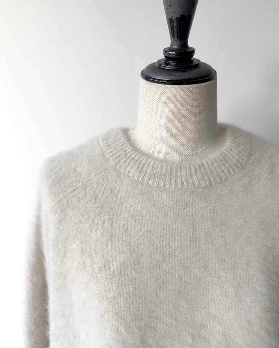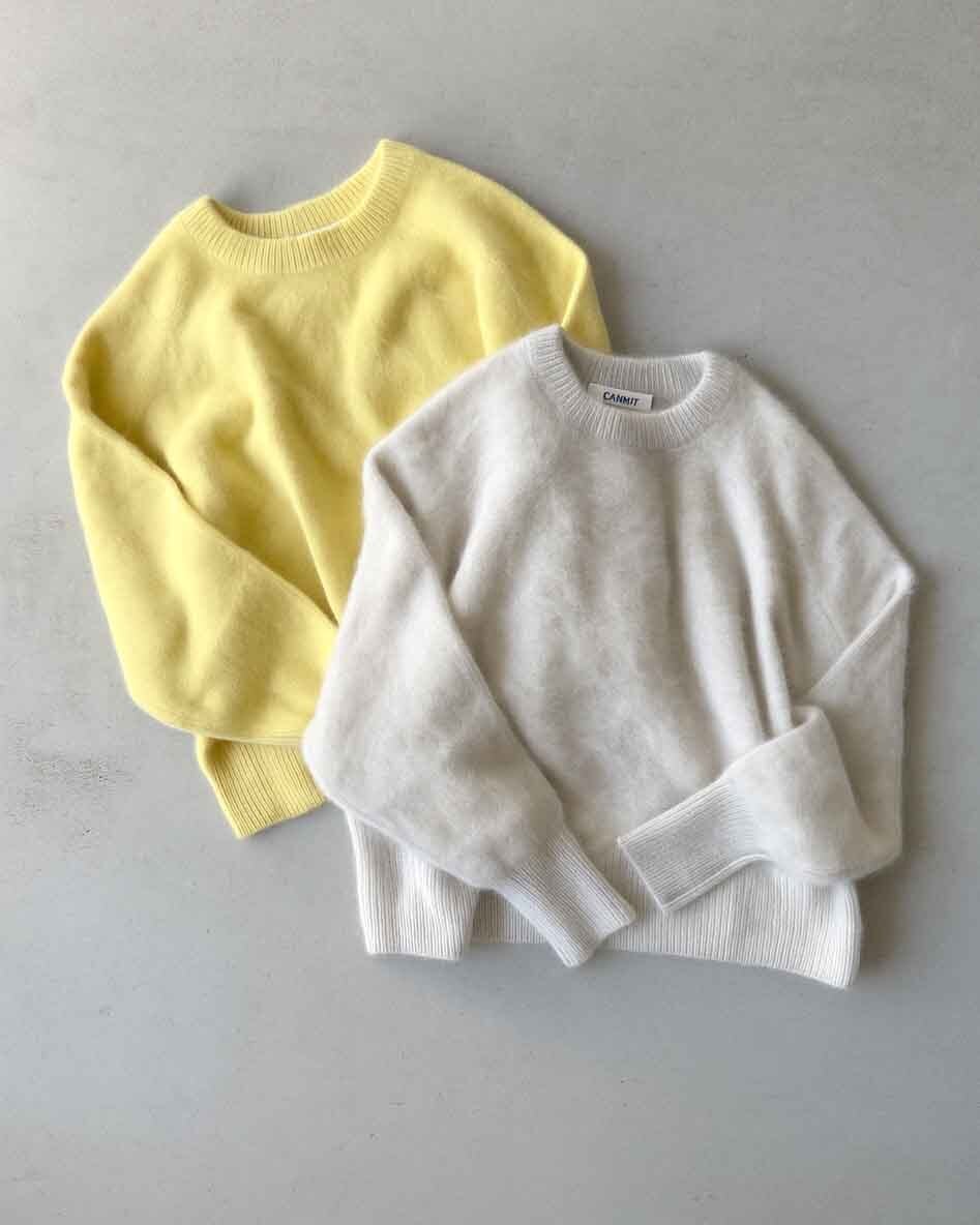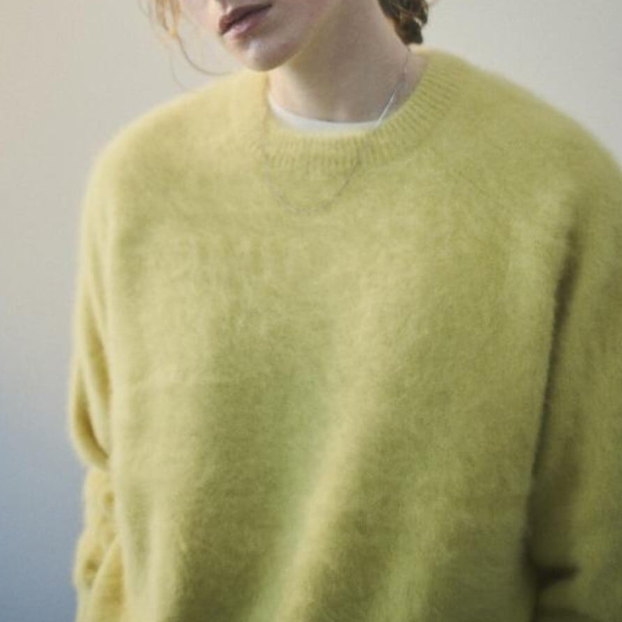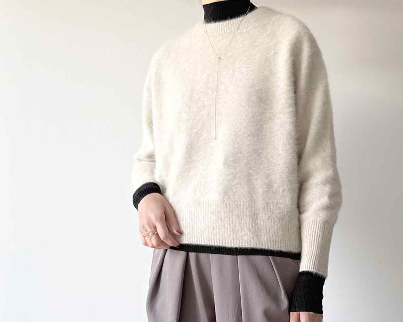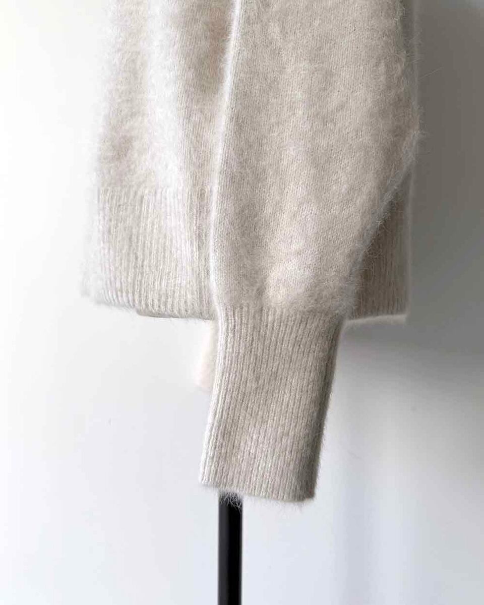 しっかりと厚みがありながらも、糸の軽さでふんわりと柔らかく、他にないボリューム感が贅沢な高級感のある一着です。
