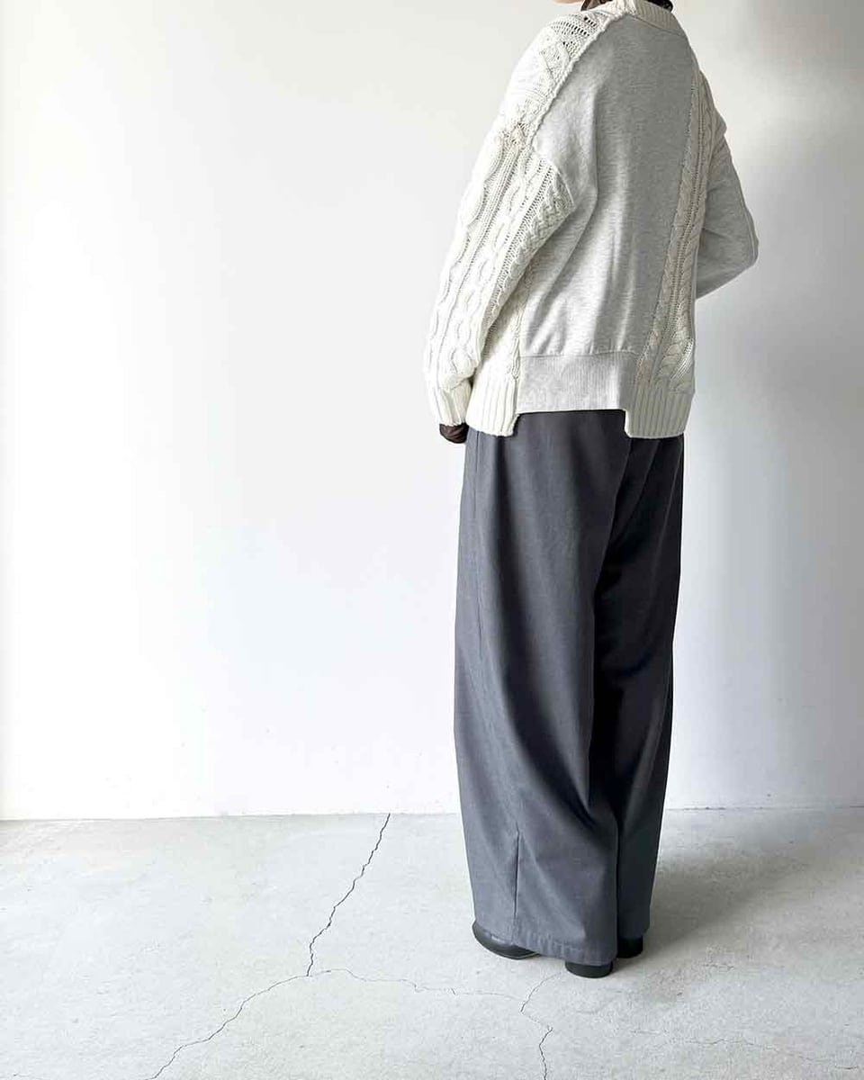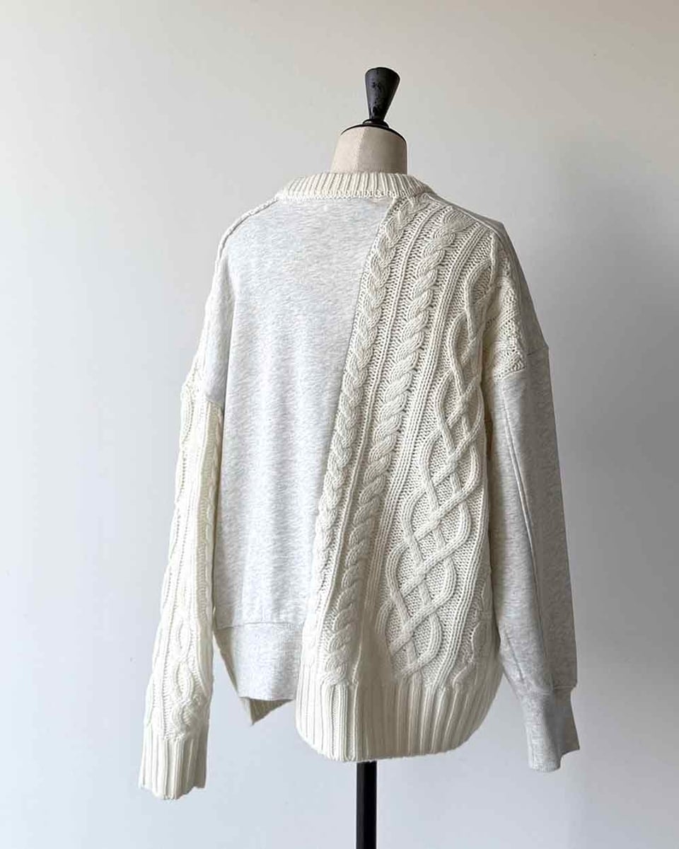 ケーブルと裏毛のカッティングに拘り、どの角度からも様々な表情感が楽しめる一枚。