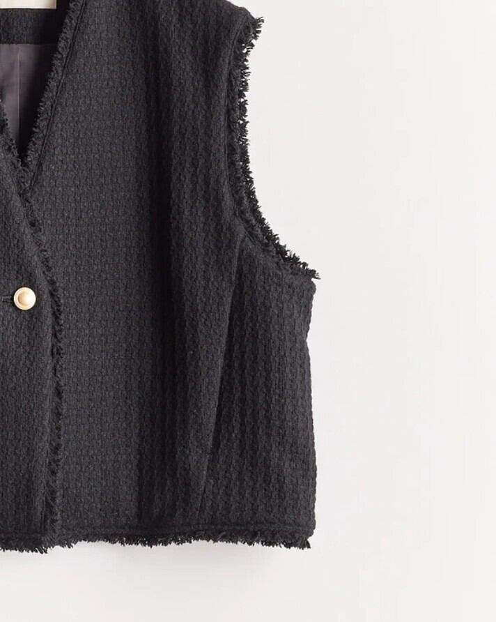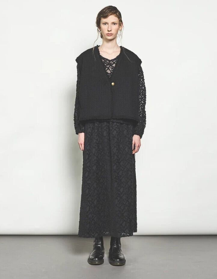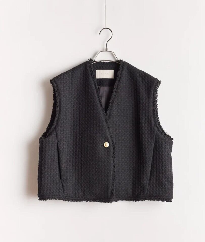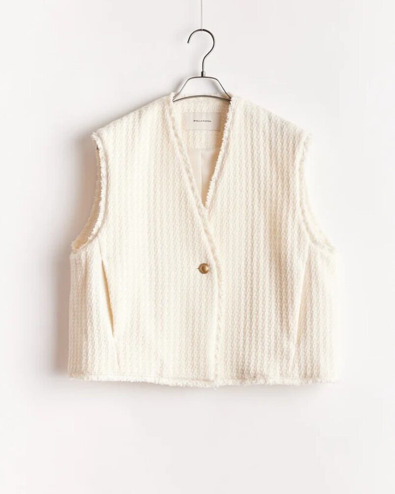 さっとまとうだけで装いに旬なムードをプラスするジレ。
