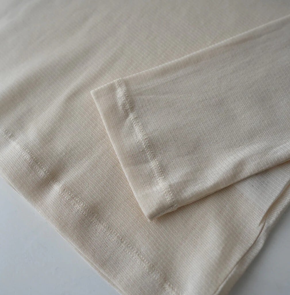 細番手ならではのしなやかな肌触りと上品な光沢感が特徴です。