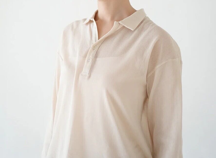 長袖のポロシャツをシンプルかつ上品に仕立てた一枚。