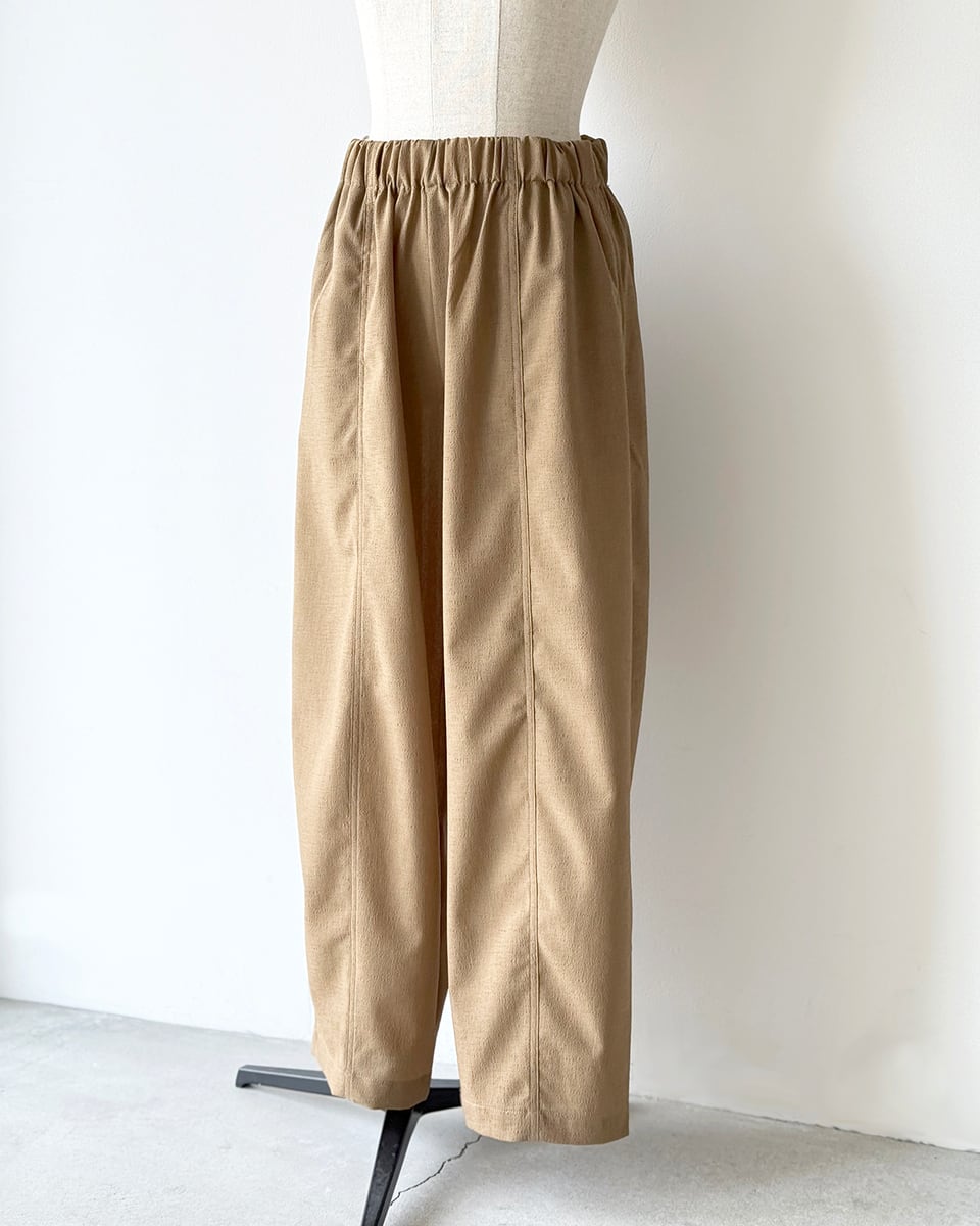 ボリューム感のあるバレルシルエットのパンツです。
