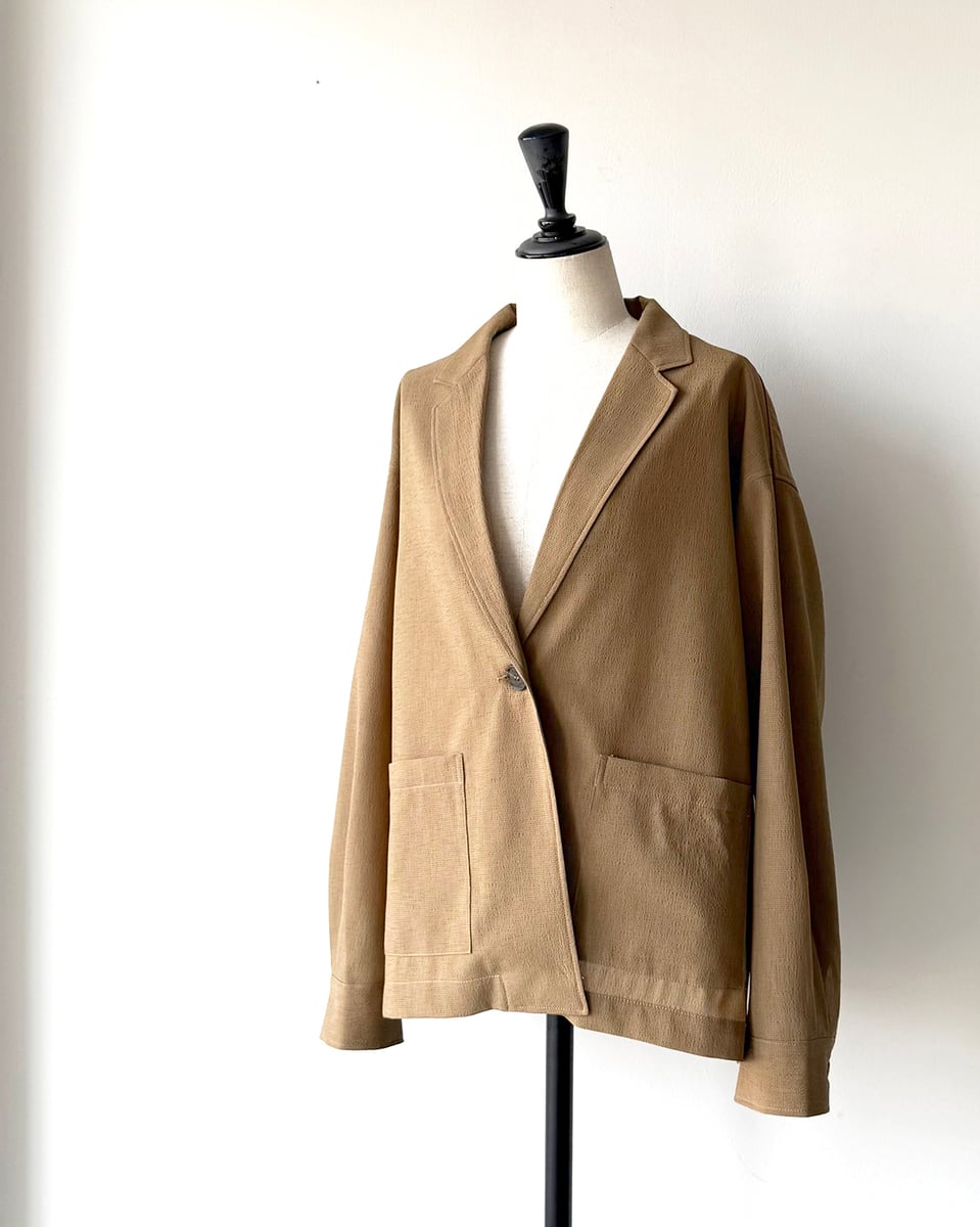 ◆夏でも快適な高機能素材のシャツディテールを組み込んだ横広スクエアシルエットのカジュアルテーラードジャケット◆