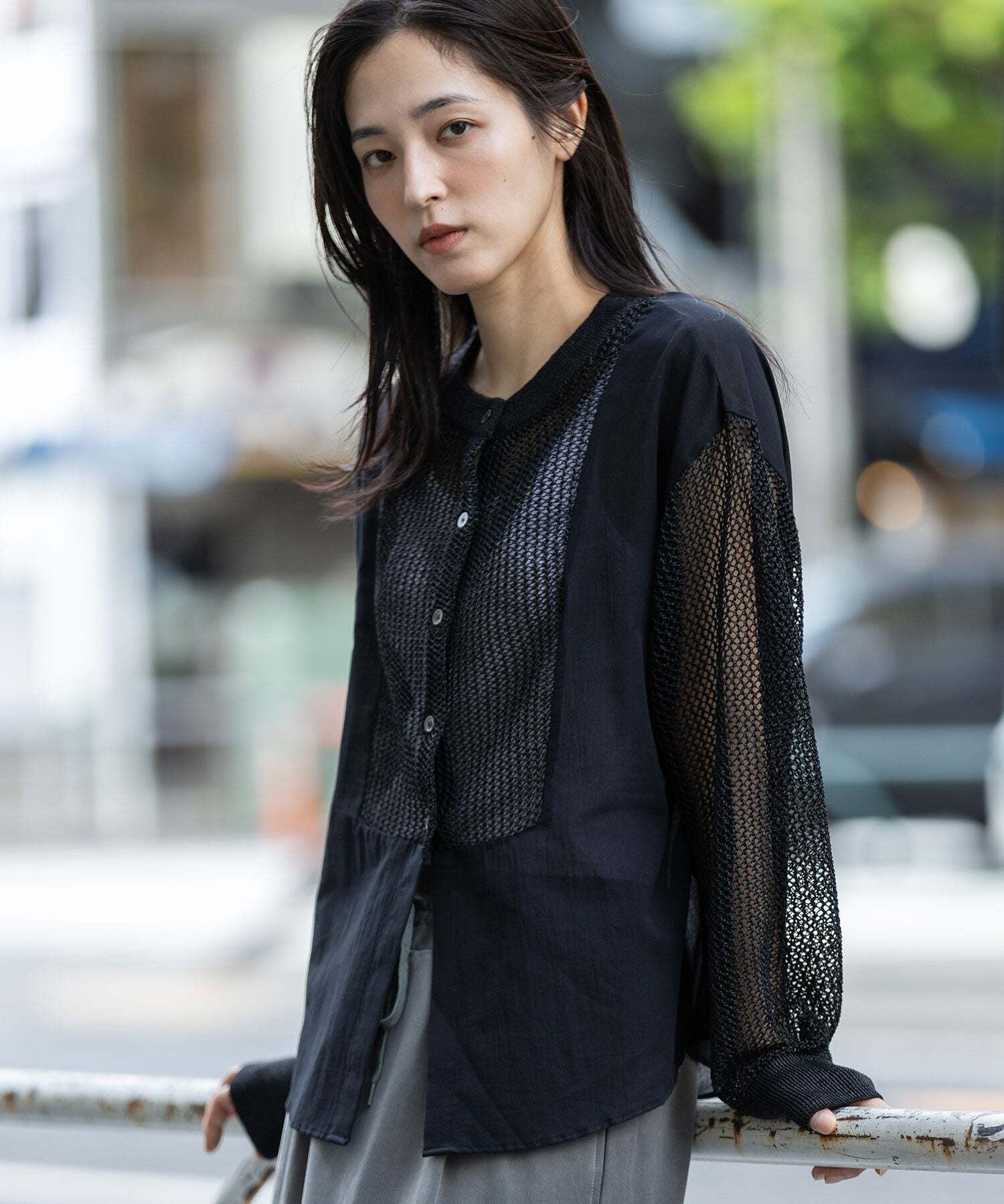 ◆エアリーなスカシ編みニットで鮮度を加えたMunichならではのドッキングブラウス◆